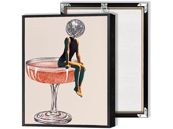 Beshdomp Retro Disco Ball Head Poster Funky Disco 70s Prints Painting Funky Cocktail Wall Art Luxury Mirrorball Wall Art Girly Dorm Room Artt Trendy Bar Cart Wall Decor 12x16in Framed