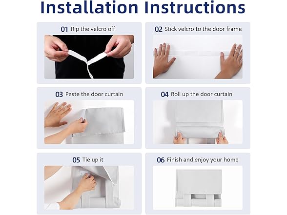 - About Installation: No need drilling, no punch, no tools. Quick and easy to install it in just several minutes and can be removed easily (as it is attached with Velcro) to be cleaned or ironed, just Velcro adhesive so no damage or harm to your windows/doors or walls. Simply peel off the separate attached hard stick tape and stick it onto the top of side window or door frame and join it with the Velcro on back of the curtain header. It is convenient to separate the Velcro and store the curtains somewhere else when you no need to hang them or move to new places.