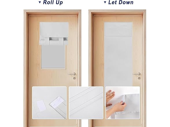 BETTELOOM curtains are crafted with care and precision, thick and substantial triple-layers fabric with black yarns in middle, blocks most lights, UV rays and views from outside offer room darkening and energy-saving capacities, great privacy and safety for owners. The stitching is impeccable, match-able colors with window frame paint and room decoration. They are good options for classrooms, offices,clinic doors, especially for those small side or low glass windows of your front doors, back doors, patio doors,study rooms, transom window, sunroom storm, screen door, garage door, dog door windows.....Also the stiff Velcro curtains are great choice for temporary rent rooms/ abode without drilling or punch with no damage doors or window frame, easy installation in several minutes, reasonable price for saving money in Tight budget.