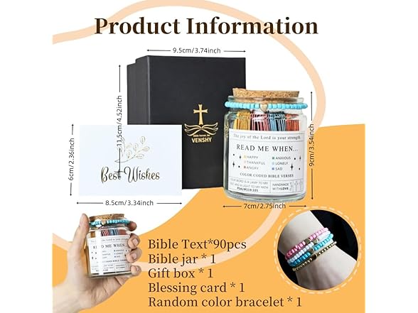 Bible Verse Jar, The Hope Jar Bible Verses for Emotions and Feelings, Prayer Jar with 90Pcs Bible Verses and Random Color Bracelet, Christian Gifts For Women and Men (A)
