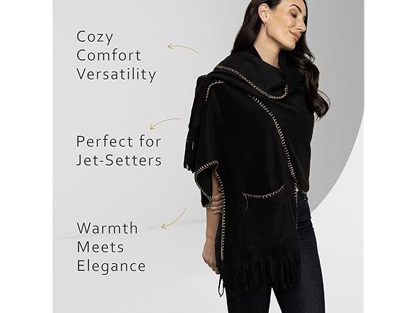 The fleece traveler wrap combines ultimate comfort, timeless style, and practicality, making it an essential accessory for jet-setters, adventurers, and anyone who loves to travel in style. Made from ultra-soft fleece, this wrap drapes beautifully over your shoulders, providing warmth and sophistication during chilly flights, breezy evenings, or relaxing moments at home. Its lightweight design ensures it’s easy to pack and carry, making it the perfect travel companion. The oversized pockets are not just a stylish addition; they are designed for practicality, allowing you to keep essentials like your phone, passport, or keys easily accessible, whether you’re navigating airport terminals, running errands, or enjoying a peaceful evening walk. Versatile and chic, the wrap complements any outfit, from casual wear to more polished looks, making it ideal for layering during cooler weather or adding an elegant touch to your ensemble. The durable construction of the wrap ensures long-lasting use, and its easy-care material makes maintenance simple. Whether you’re flying, exploring a new city, or just unwinding at home, the fleece traveler wrap offers both style and functionality, ensuring you stay cozy, warm, and fashionable in any setting. Designed for those who value comfort and elegance in their everyday adventures, this wrap is perfect for anyone looking to elevate their travel wardrobe or simply enjoy a plush, versatile piece for daily wear, making it a must-have item for every traveler.