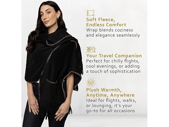 - [ SOFT FLEECE MATERIAL ] Made from ultra-soft fleece, this traveler wrap ensures warmth and comfort during chilly flights, breezy evenings, or cozy moments at home; the high-quality fabric provides a luxurious feel, perfect for travel or everyday use.