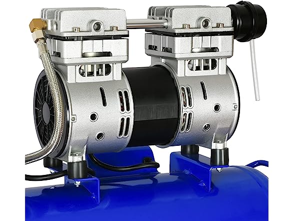 - Low Maintenance: Featuring an oil-free dual-piston pump system, this compressor eliminates the need for regular oil changes and maintenance. This not only saves you time and money but also ensures consistent performance over the long term. Additionally, the two pressure control gauges provide precise pressure adjustments, allowing you to maintain optimal performance for different applications.