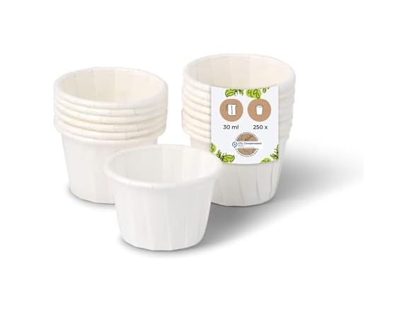 BIOZOYG Paper Sample Cups 250 Pack 1 oz White Round - Sauce Cups Bio-coated Biodegradable - Jello Shot Cups Medicine Cups Portion Cups for Heavy Creme, Mustard, Ketchup