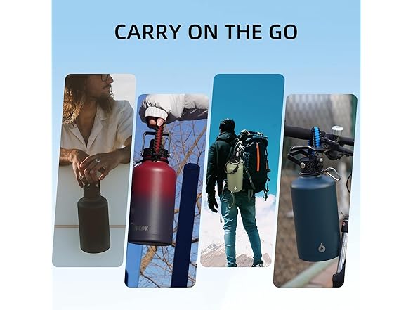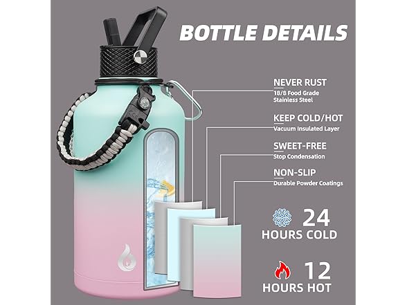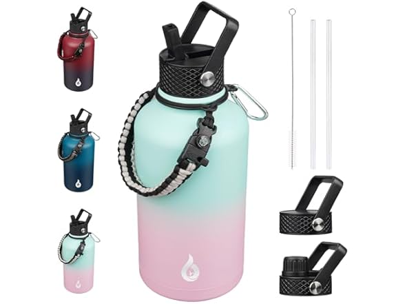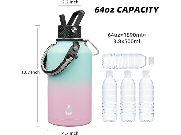 BJPKPK Half Gallon Insulated Water Bottles with 3 Lids and Paracord Handle, 50oz, 64oz, 87oz, 128oz Large, Stainless Steel Water Bottles with Straw Lid, Half Gallon Water Jug,Marshmallow