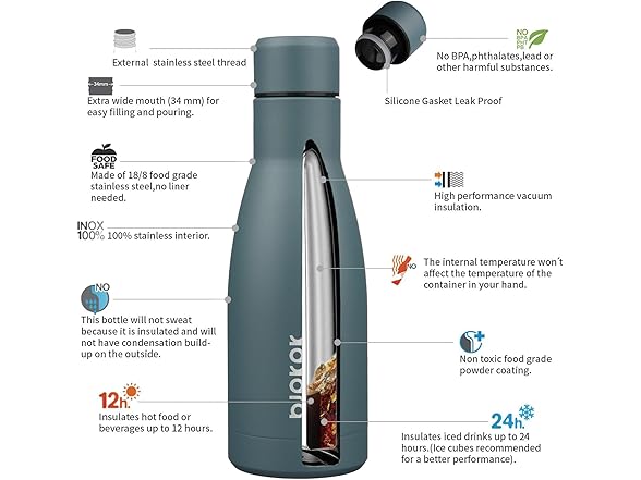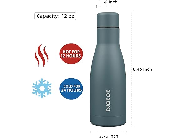 BJPKPK 12oz Water Bottles Stainless Steel Double Wall Vacuum Insulated Small Water Bottles for Travel,Deep Grey