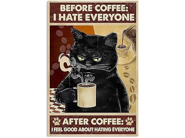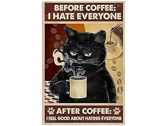Black Cat Metal Poster Before Coffee I Hate Everyone After Coffee I Feel Good About Hating Everyone Funny Kitty Tin Signs Cafe Restaurant Kitchen Living Room Bathroom Home Art Wall Decor