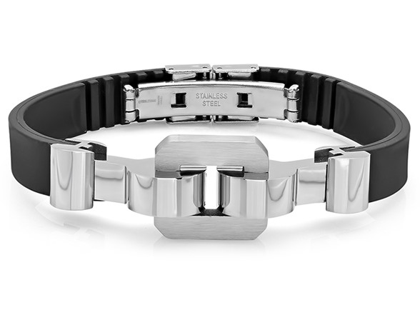 STEELTIME 659-011-B Black Rubber Bracelet w/ Steel Accent