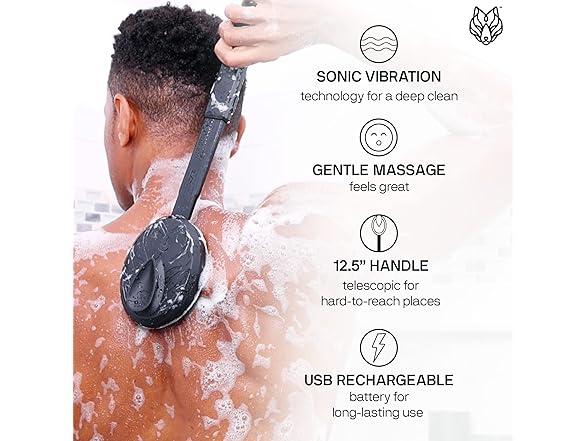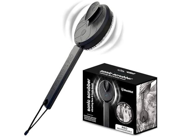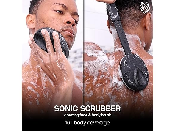 - Elevate Your Shower Experience: Black Wolf’s Sonic Scrubber Pro is a vibrating 2-in-1 face & body brush, offering a deep clean and gentle massage. The sonic vibration technology for a deep clean effectively helping to remove trapped dirt.