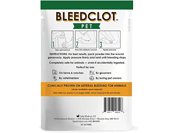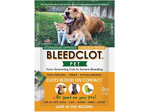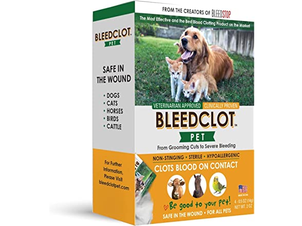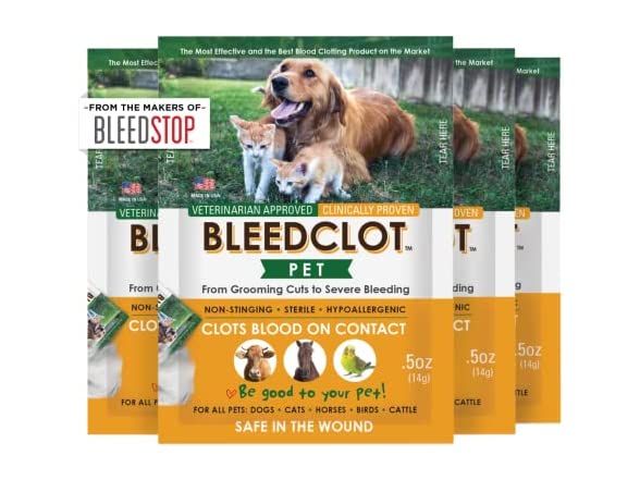BleedClot Pet First Aid Blood Clotting Powder | The Best for All Animals to Stop Bleeding, Guaranteed | for Minor Cuts and Severe Arterial Bleeding | from The Makers of BleedStop (4 Pouches (0.5 oz))