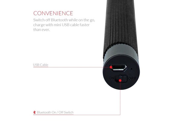 Koomus Selfie stick now enables you to take self-photo of yourself, with your friends or family without help of strangers. Koomus Selfie stick is light weight, portable and extendable from 8 inches to 39 inches long. Latest Bluetooth technology allows you to pair your smartphone with Selfie stick wirelessly so that you can just push a button on stick to take pictures or start recording a video of yourself or hard to reach area ie) taking a photo or video from crowded place. Charging is easy, just takes about 1 hour to fully charge. Compatible with iOS devices version 6.0 and Android devices version 4.2.2 above. Now, it's time to have fun with Koomus Bluetooth Selfie stick!