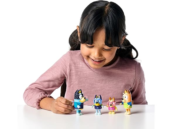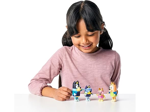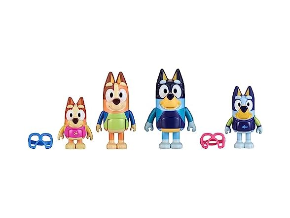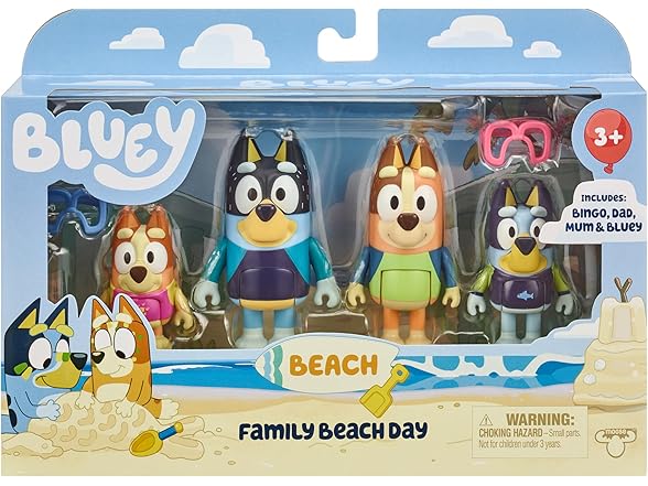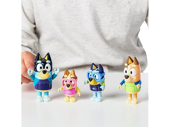 Bluey Figure 4-Pack, Family Beach Day 2.5-3 Inch, Bingo, Bandit and Chilli Character Figures with Accessories