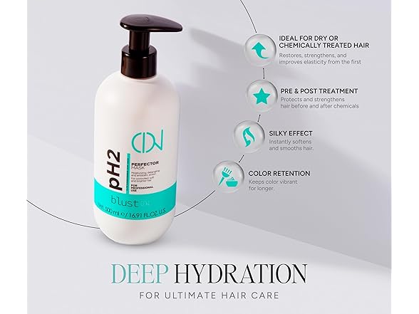 - Acidic pH2 Cuticle-Sealing Technology: PH2 Perfect Mask is a professional acidic pH2 treatment engineered to rebalance the hair after color or lightening services. Its low-pH formula helps seal the cuticle, refine the hair surface, and leave a smoother, more reflective, salon-quality finish.