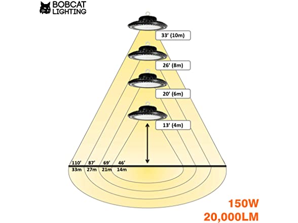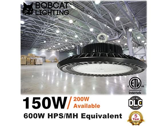 - ✔ WIDE APPLICATION - Bobcat LED high bay is perfect for factory, warehouse, workshop, garage, backyard, supermarket, exhibition hall, stadiums and more. Also, the ETL IP65 approved UFO high bay lights and optional accessories can be used in outdoor and indoor. The optional mounting bracket allows you to angle it to any angle.