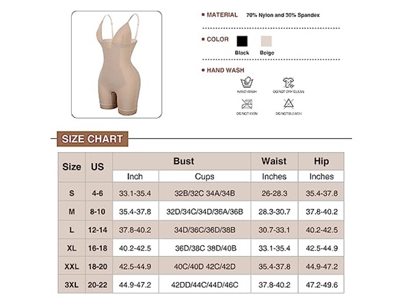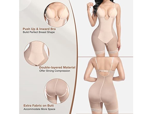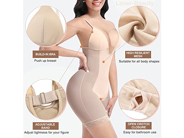 Lover-Beauty Tummy Control Bodysuits Seamless Full Body Shaper U Plunge Shapewear Butt Lifter, Short, Beige 3XL