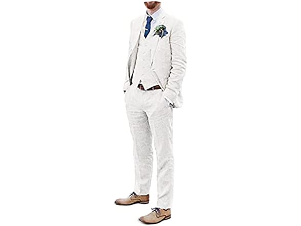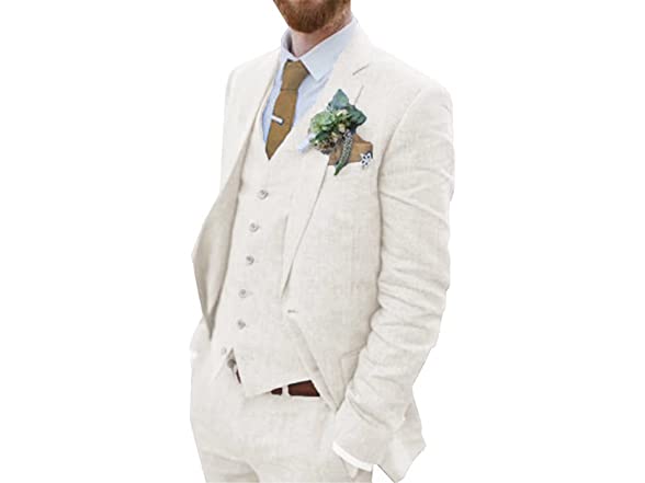 In the Box: (1) Bofan Men Suits Linen Ivory Beach Wedding Suits Seersucker 3 Piece Groomsmen Attire Linen Blazer Vest Pant Prom Tuxedo IV-4236
