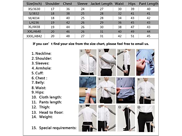 - ABOUT SIZE: Please order the suit According to your actual Chest measurements, not the waist. The pant waist is adjustable, 2-3 inches adjustment is no problem.