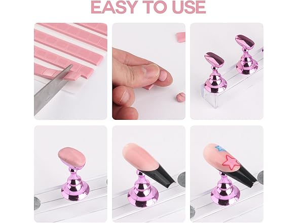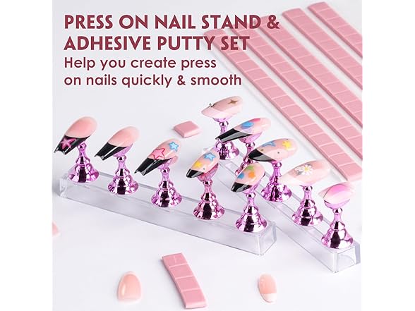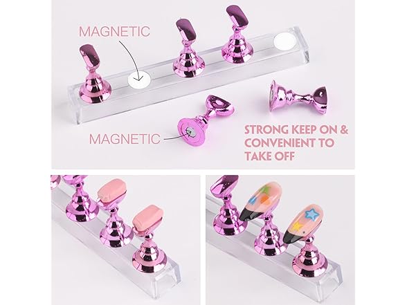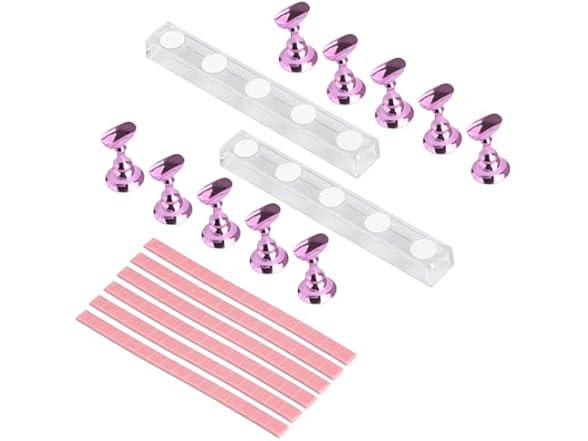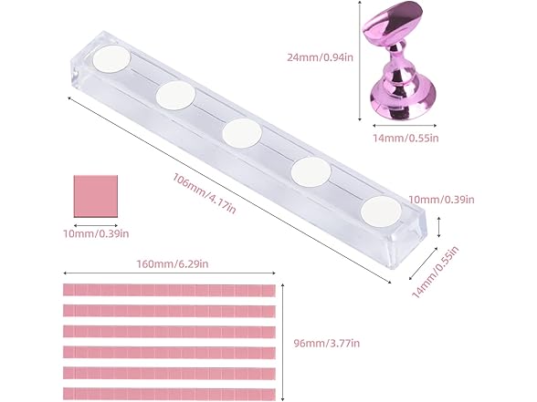 BORNBYME Nail Practice Stand Kit for Press on Nails, 10 Pink Acrylic Magnetic Practice Stands Fake Nail Tip Holders with 96 PCS Reusable Adhesive 1Big Base Stand for Nail Tech