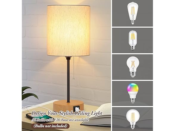 - 【Pull Chain & E26 Bulb Base】The flaxen shade complimented by the silver pull chain creates a modern atmosphere to a room. And the pull chain switch is easy to operate,just pulling.Suitable for everyone.This lamp has an E26 standard base socket. You can customize your stylish lighting with different shapes or different colors of any E26 base light bulbs to create your unique decoration. (Bulbs not included)