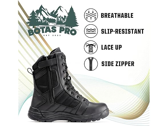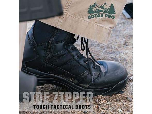 BOTAS PRO Tactical Boots for Men 8 inch Side Zipper Lightweight Comfortable Military Hiking Boots(BMP110BK-14)