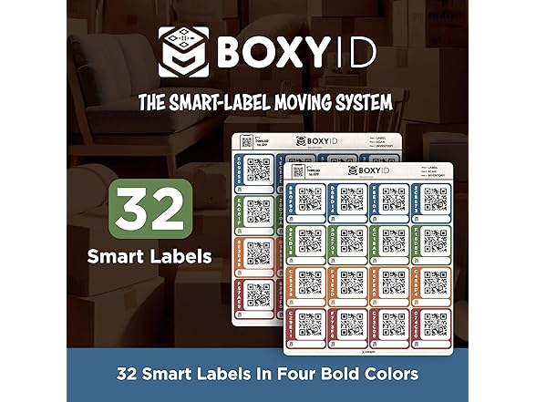 BoxyID QR Code Labels for Effortless Moving Organization: BoxyID - The Smart-Label Moving System: These innovative QR Code Stickers are designed to simplify your moving process by helping you organize and track your belongings with ease. Each pack includes 32 adhesive labels, sized at 2”x2”, featuring QR codes that can be scanned with any smartphone camera. The QR codes allow you to input essential details about each box’s contents, such as item names, descriptions, room assignments, and even photos, making it easy to identify and locate items during and after your move. Engineered for the demands of moving, BoxyID labels are durable, waterproof, and scratch-resistant, ensuring they stay intact throughout the journey. They adhere securely to various surfaces, including cardboard boxes, plastic bins, and metal containers, and can be easily removed without leaving any residue. Perfect for organizing your move, these labels help you keep track of kitchen essentials, clothing, electronics, decor, and more. With BoxyID, you can categorize your boxes by room or priority, streamlining the unpacking process and reducing stress. The Smart-Label Moving System: Whether you’re relocating across town or to a new state, BoxyID is an essential tool for anyone seeking an organized and efficient moving experience.