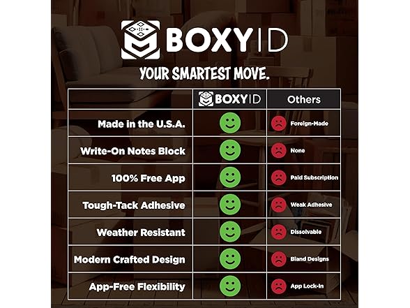 - Family-Owned and Proudly Made in the USA: As a family-owned business, we are passionate about creating products that simplify and enhance everyday life. BoxyID was developed with the same care and attention to detail as our CrateID system, ensuring the highest quality and practicality. Proudly made in the USA, our smart labeling system makes moving easier, more organized, and less stressful for families everywhere.