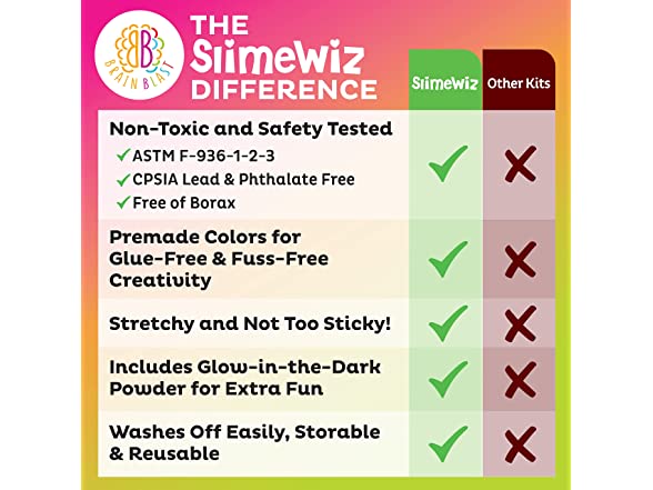 - Safe. Easy. Fun. – This non-toxic formula has been Quality and ASTM certified for safety, and has just the right consistency for squeezing, twisting, and oozing! It’s not too sticky, is easily washed off, and can be stored for reuse. It’s the perfect slime kit for girls or boys aged 5+ to stimulate their senses and encourage learning and discovery. Squishing and decorating slime can also assist the development of fine motor skills and hand-eye coordination.