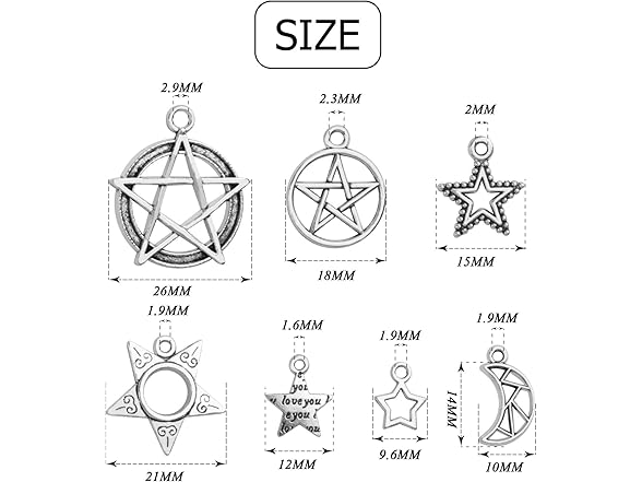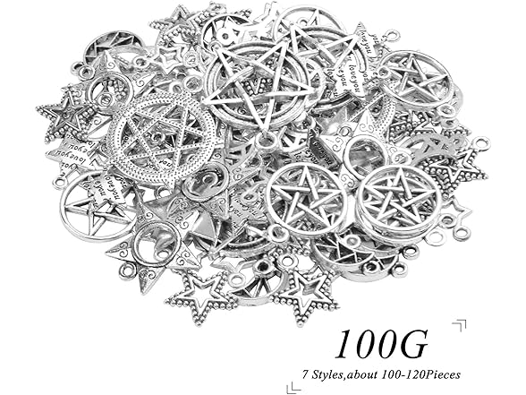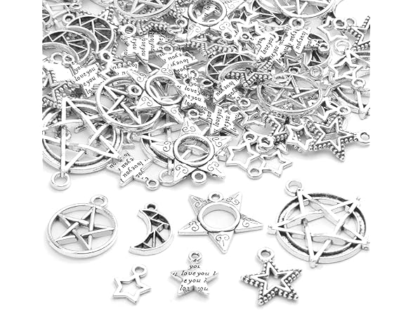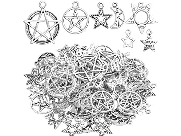 BronaGrand 100g (80-150pcs) Mixed Moon Star Charms Antique Alloy Celestial Charms Pendants for Bracelets Necklaces Crafts