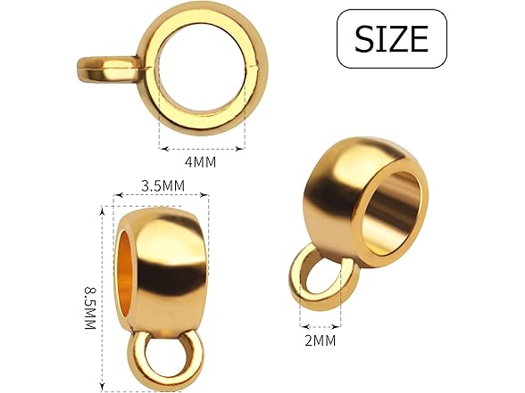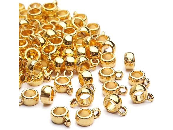 BronaGrand Bail Tube Beads, 100pcs Antique Golden, 4mm Hole, Fit Snake Chain, European Charm Bracelet, Necklace