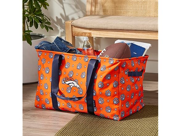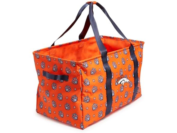 Vera Bradley Women's Recycled Lighten Up Nfl Large Car Tote (Multiple Teams Available), Denverbroncosonorange/Navybandana, One Size