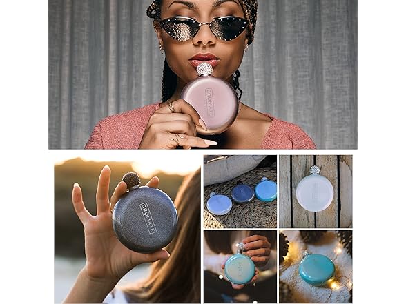 - THE WORLD’S MOST FASHIONABLE FLASK - This liquor flask features a cute, stylish design with holographic glitter coating and rhinestone cap. The round bottle is crafted from stainless steel for a classy look that’s a welcome addition to any lady’s accessories.