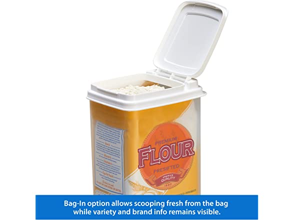 - Bag In Option - This clear storage container helps to easily identify your sugar and flour containers. The unique Bag-In storage option that keeps the container clean while preserving freshness.