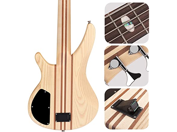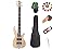 Bullfighter Electric Bass Guitar 4 Strings Full Size P Bass Beginner Kit Black for Starter with Gig Bag, Guitar Strap, and Guitar Cable (4) (5S)