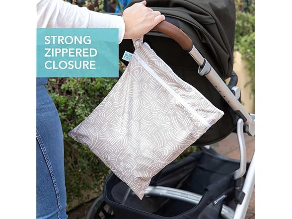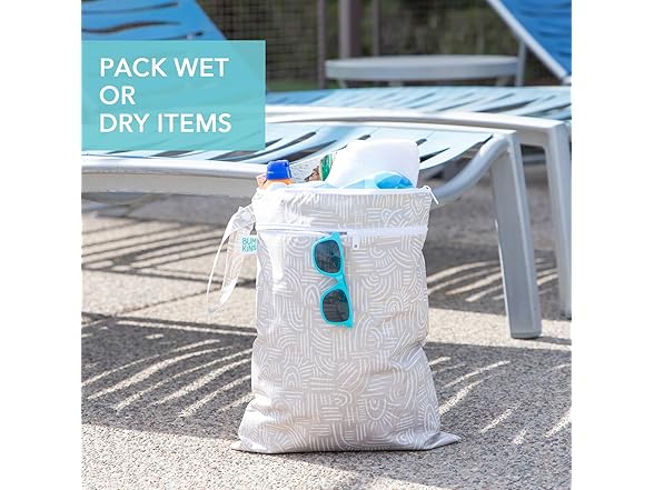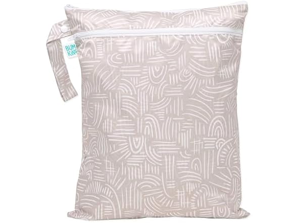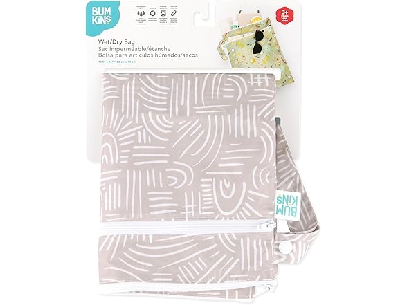 Bumkins Waterproof Wet Dry Bag for Baby, Travel, Swim Suit, Cloth Diapers, Pump Parts, Pool, Beach, Gym Clothes, Toiletry, Hook to Stroller, Daycare, Zipper Reusable Wetdry Packing Pouch, Boho Beige