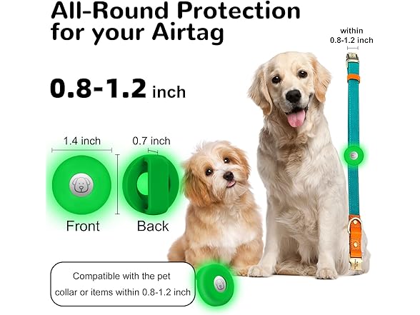 - 【COMPATIBLE】Designed for Apple AirTag 2021, this airtag dog collar holder with precise cut-out is slim fit, which can secure and cover the Airtag, protecting your airtag from scratches, drops, fall and unnecessary drag. It fits for 0.8-1.2 inch pet collar/pet loop and is easy to put on & off.