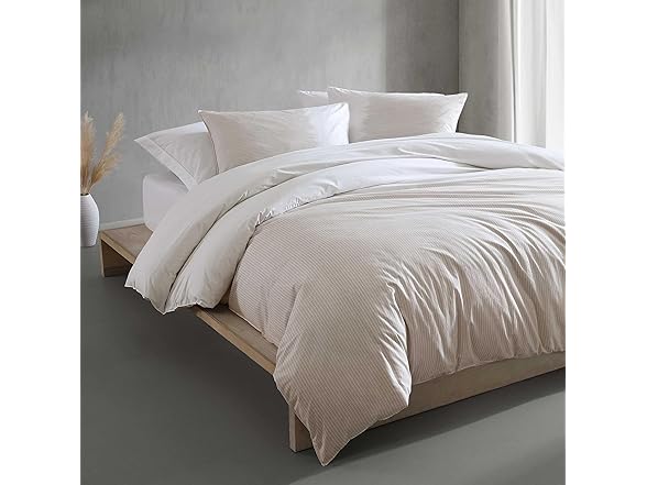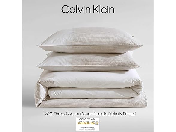 Calvin Klein - King Comforter Set, Soft Cotton Percale Bedding, Ikat Pinstripe Home Decor (Neutral Pink, King)