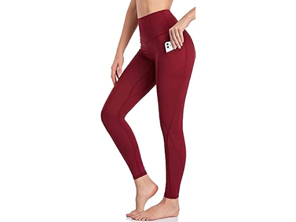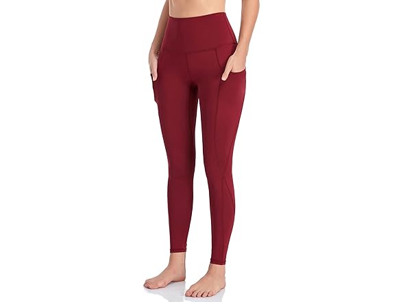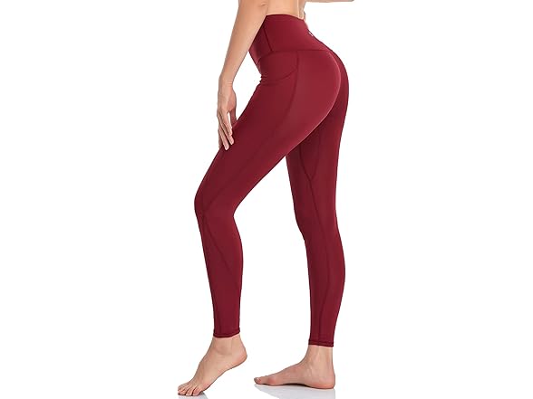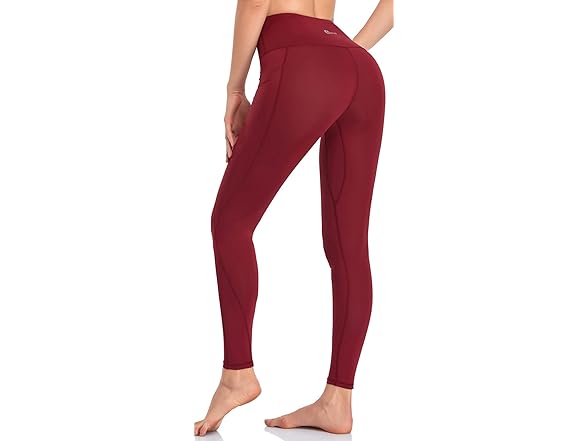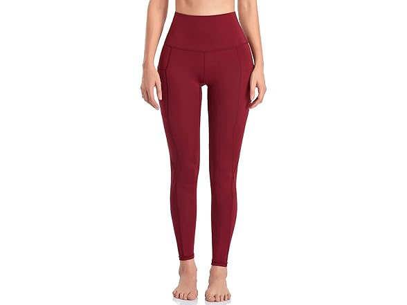 CAMMUR Women's Naked-Feeling High Waisted Leggings, Buttery-Soft Tummy Control Yoga Pants with Pockets for Workouts - 7/8 Wine Red