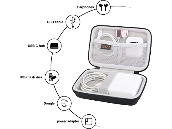 Canboc Carrying Case for MacBook Air Pro Charger MagSafe/MagSafe 2 Power Adapter, iPhone 14/14 Pro Charger, USB Type C Hub, USB Multiport Adapter, Hard Shockproof Bag, Black
