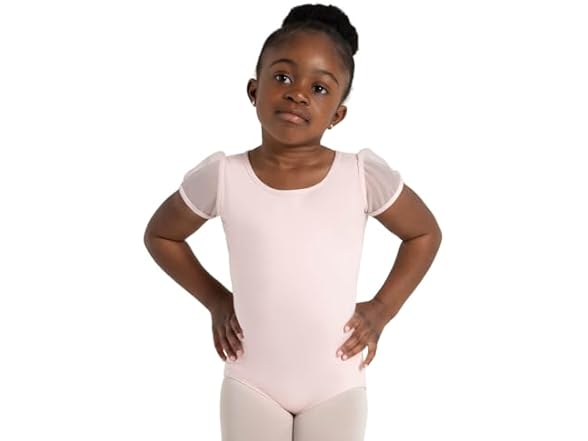 Capezio Big Girl's Puff Sleeve Keyhole Back Leotard Pants, Pink, Medium