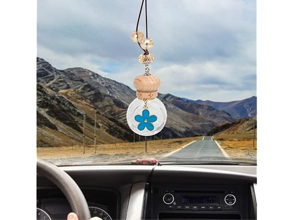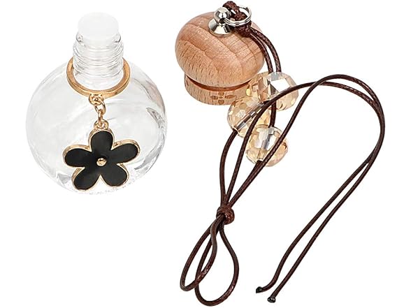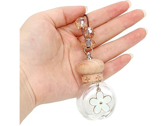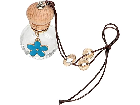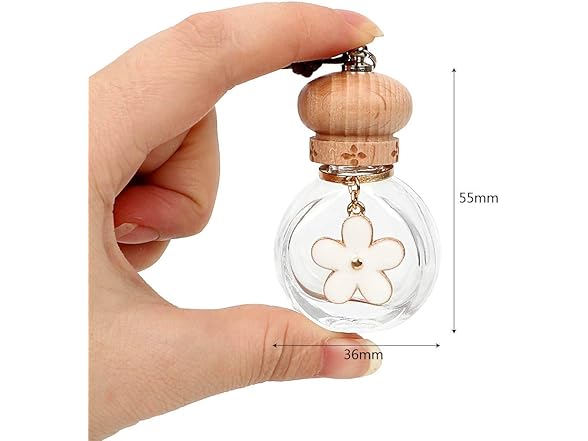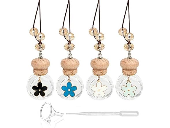 10ml Car Hanging Perfume Air Freshener Diffuser,Essential Oil Flower-Style Pendant Perfume Vials,Thick Clear Glass Fragrance Container With Wooden Caps & Hanging String,FREE Funnel,Dropper-Pack of 4