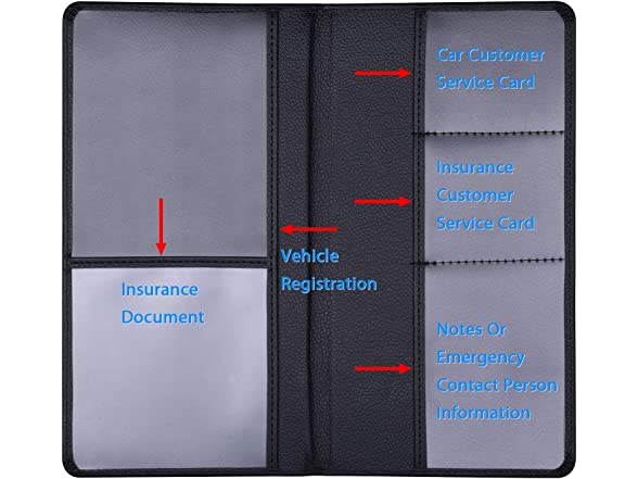 - Perfect auto car document holder, keeps your registration and insurance paperwork, business cards, emergency information all well organized and looks better than papers just scattered in the glove box.