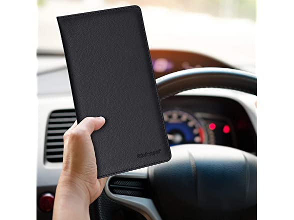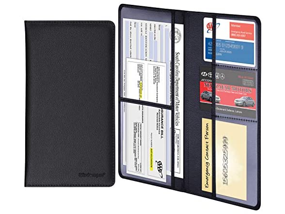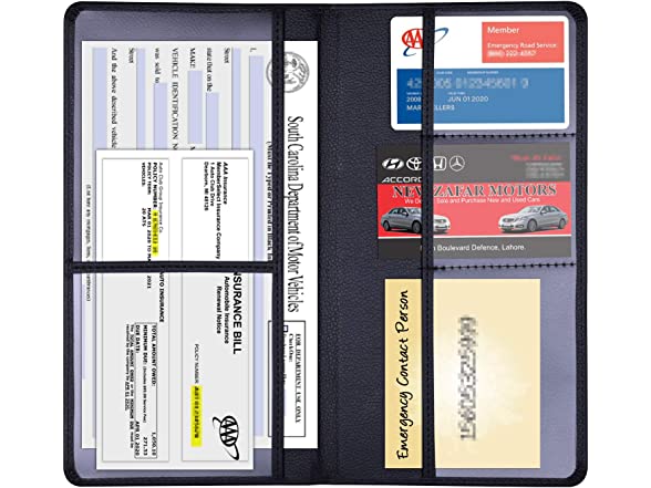 - This practical wallet case is perfect to maintain your car paperwork secured and protected. With 5 clear sleeves for your gas card, car registration and insurance informations in.