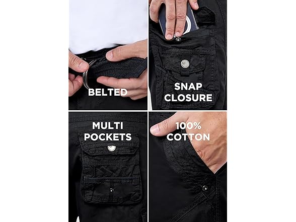 X RAY Mens Cargo Shorts Camo & Solid Colors 12.5" Inseam Knee Length Classic Fit Multi Pocket (Big and Tall Shorts for Men), Double Stitch Black, 38