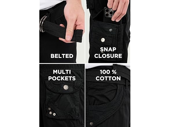 X RAY Mens Cargo Shorts Camo & Solid Colors 12.5" Inseam Knee Length Classic Fit Multi Pocket (Big and Tall Shorts for Men), Twill Taped Black, 40