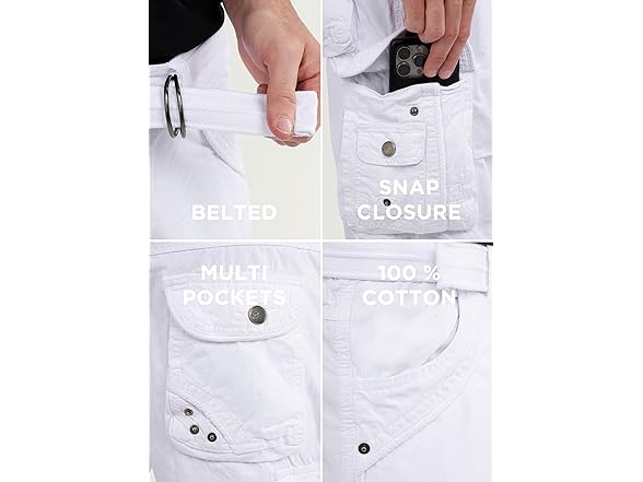 X RAY Mens Cargo Shorts Camo & Solid Colors 12.5" Inseam Knee Length Classic Fit Multi Pocket (Big and Tall Shorts for Men), Twill Taped White, 38