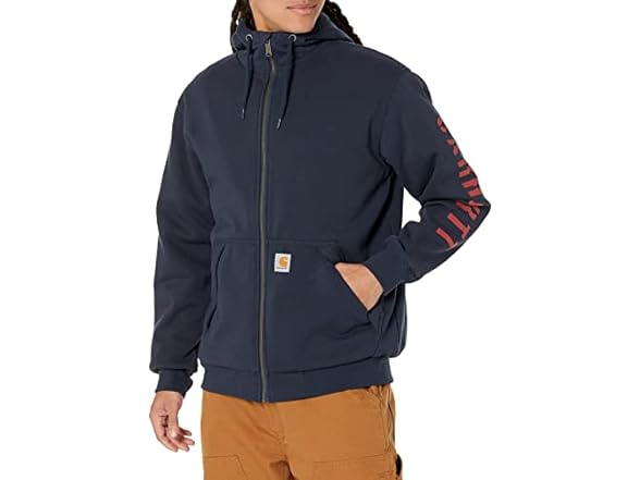 Carhartt Men's Rain Defender Loose Fit Fleece Lined Logo Graphic Sweatshirt, New Navy, Medium