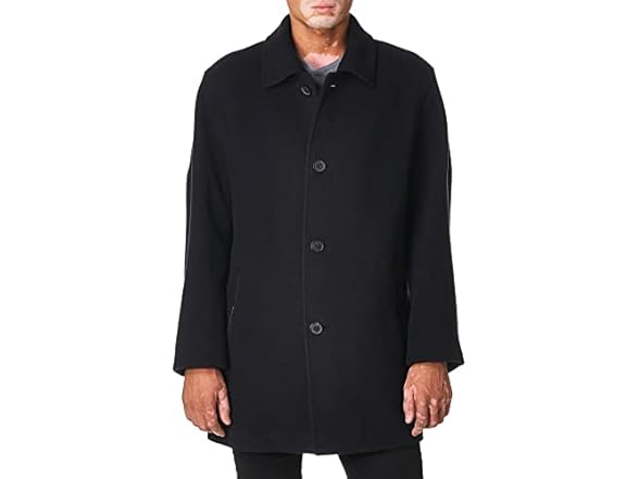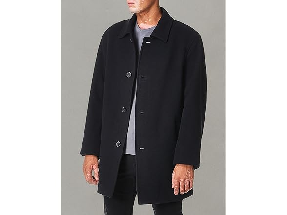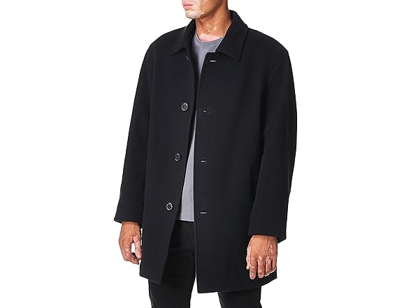 Cole Haan Men's Cashmere Blend Overcoat, Single-Breasted Mid-Length Jacket, Navy, Medium