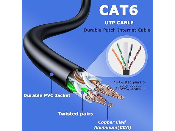 - 【Cat 6 Cables With 24 AWG Conductors】UTP 24AWG stranded conductors for flexibility, twisted in pairs and nested in a spline to minimize crosstalk, gold-plated contacts for high-speed data transfer and corrosion resistance. Cat6 Ethernet cable, Ethernet patch cable, RJ45 cable, multi cable, electronic cables, Gigabit cable, router cable, computer cables, Ethernet cable pack, computer parts, premium quality, durable design to ensure maximum reliability and practicality.