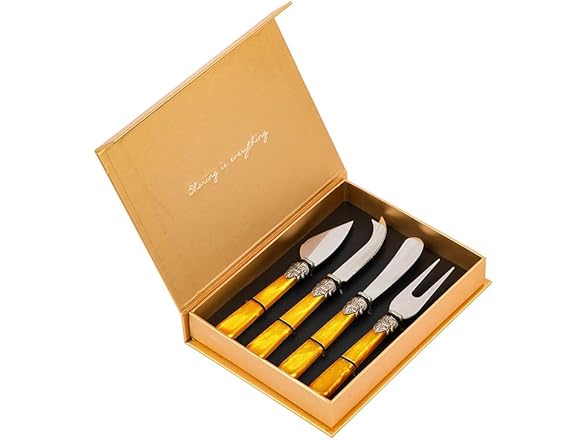 CATHYLIN 4-Piece Cheese Knive Set With Gift Box Stainless Steel Knife With Pearl Handle,Suitable For Parties And Festivalsfor Charcuterie Boards Accessories (Yellow)