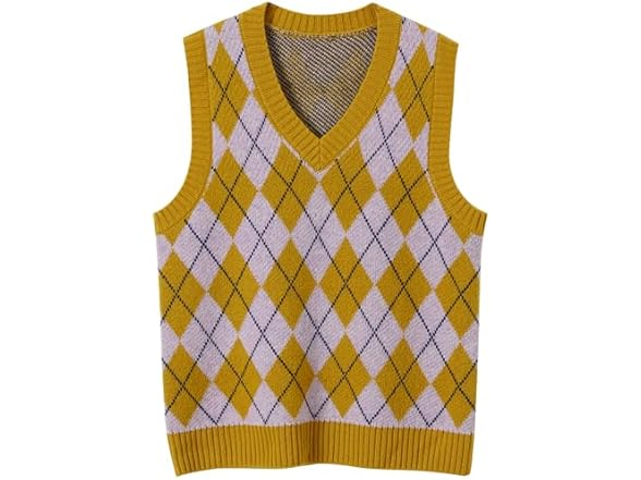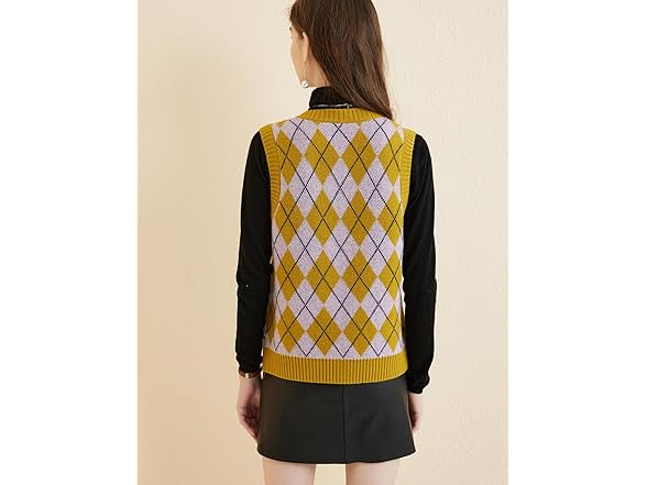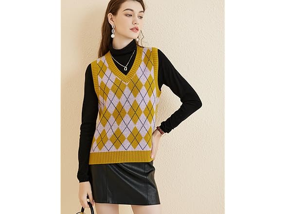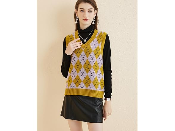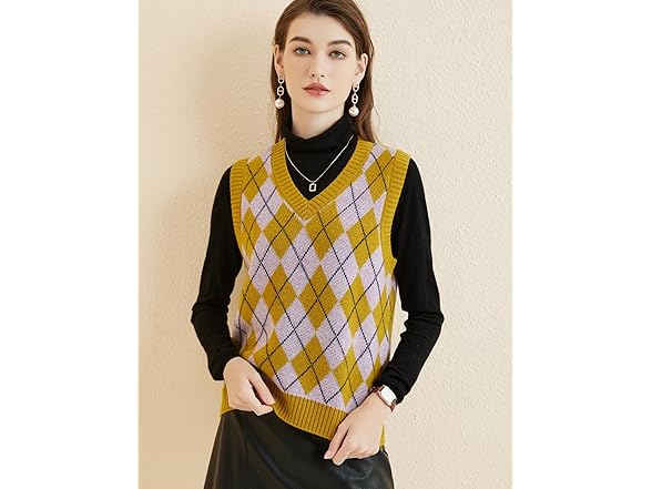 Chanyarn Women's 100% Merino Wool Sweater Vest 2025 Fall Winter Diamond Lattice V Neck Sleeveless Knit Sweater Vest (Maple Leaf,XL)
